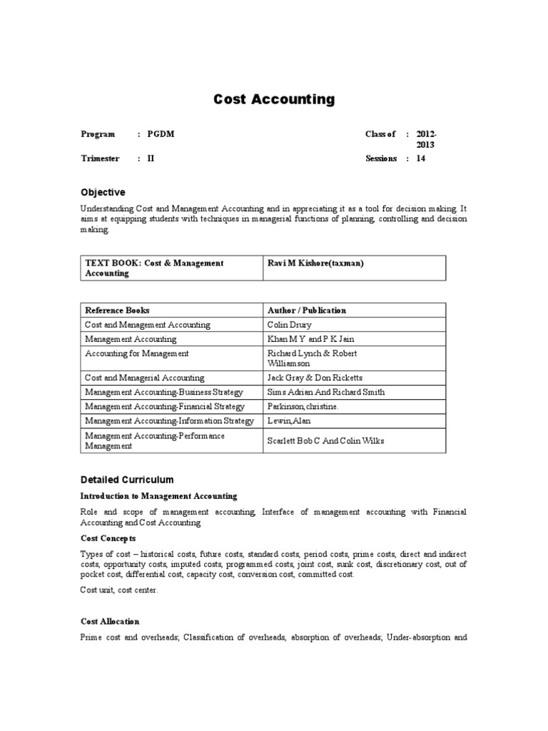 Cost Accounting Outline Cimp Cost Accounting Management Accounting Accounting A Programmed Text www.scribd.com
