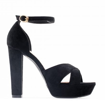 D C Crossover Ankle Strap Open Toe Chunky Platform Heels Black Ankle Strap Chunky Platform Heels