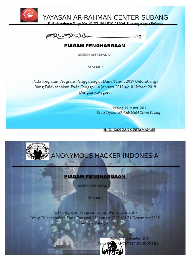 Piagam Pengharaan Ar Rahman Ceter Subang Doc Anonymous Indonesia 2019 id.scribd.com