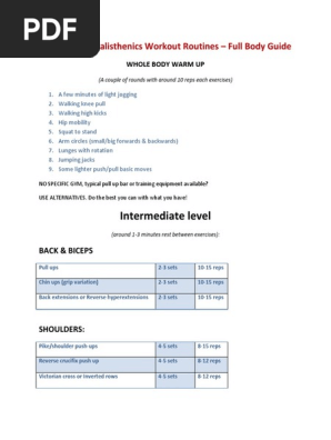 Intermediate Calisthenics Workout Routines Limbs Anatomy Calisthenics Workout Plan Advanced