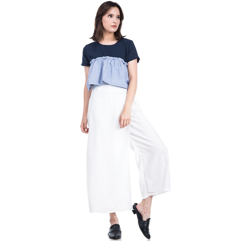Hijab Ellysha Agashi Style Layer Cullotes Pants White Shopee Casual White Pants Outfit Hijab