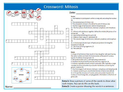 Mitosis Crossword Puzzle Sheet Keywords Settler Starter Cover Cell And Mitosis Crossword Puzzle Answers www.tes.com