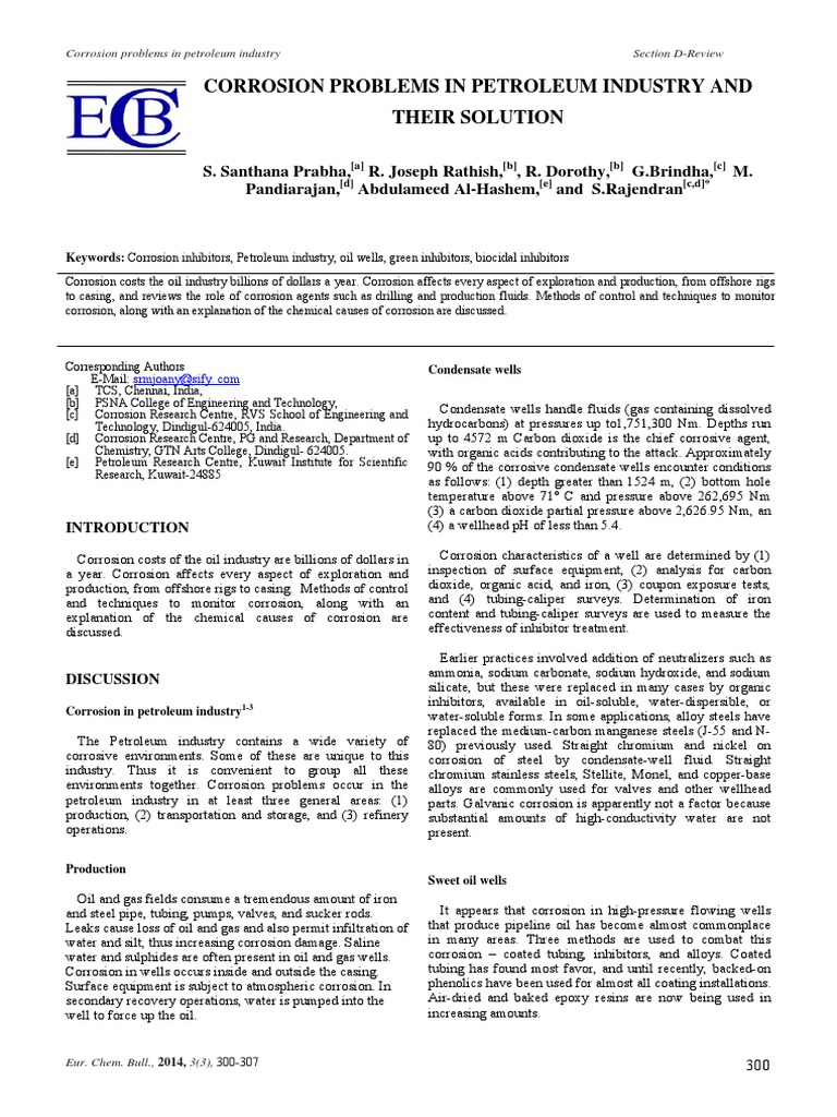 Corrosion Problems In Petroleum Industry Theire Solution Chemistry Causes Of Corrosion www.scribd.com