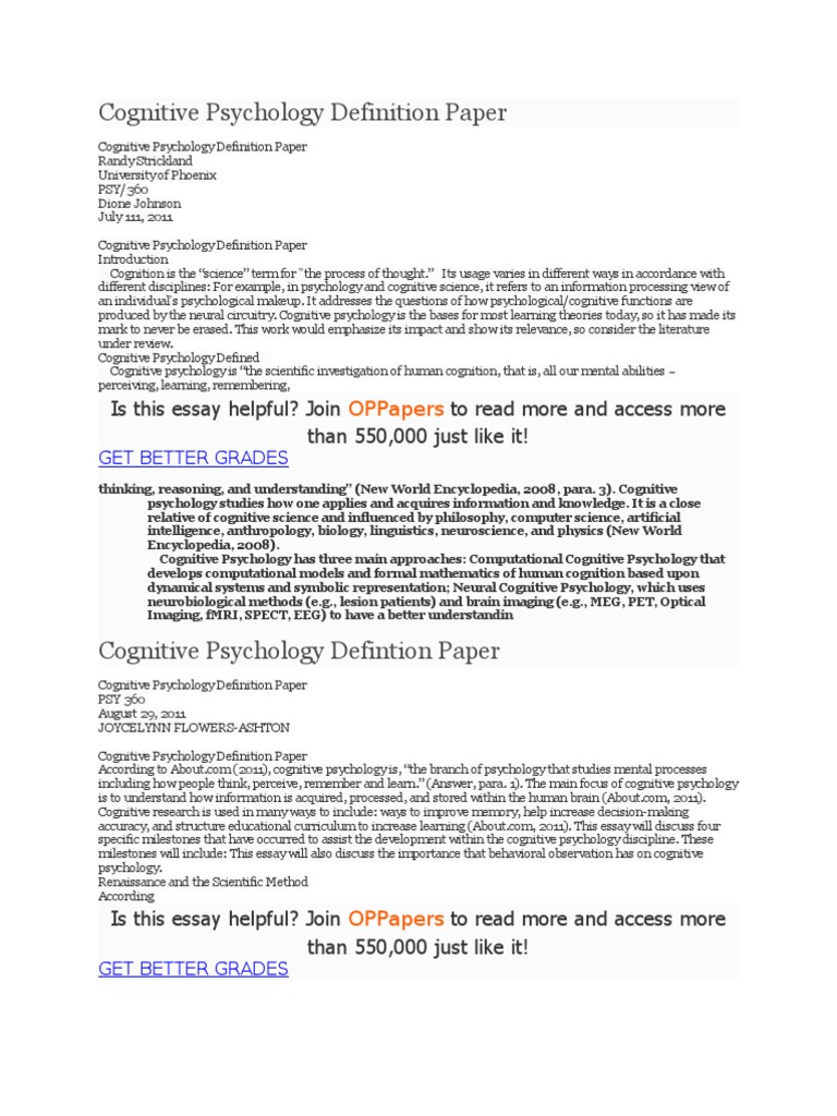 Psy 360 Psy360 Week 1 Individual Assignment Cognitive Cognitive Psychology Definition www.yumpu.com