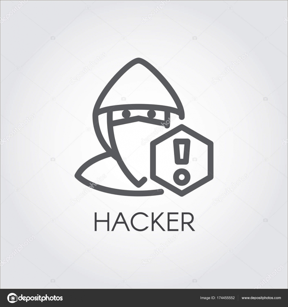 Computer Hacker Line Icon Abstract Figure Of Man In Mask And Computer Hacker Anonymous Mask Logo
