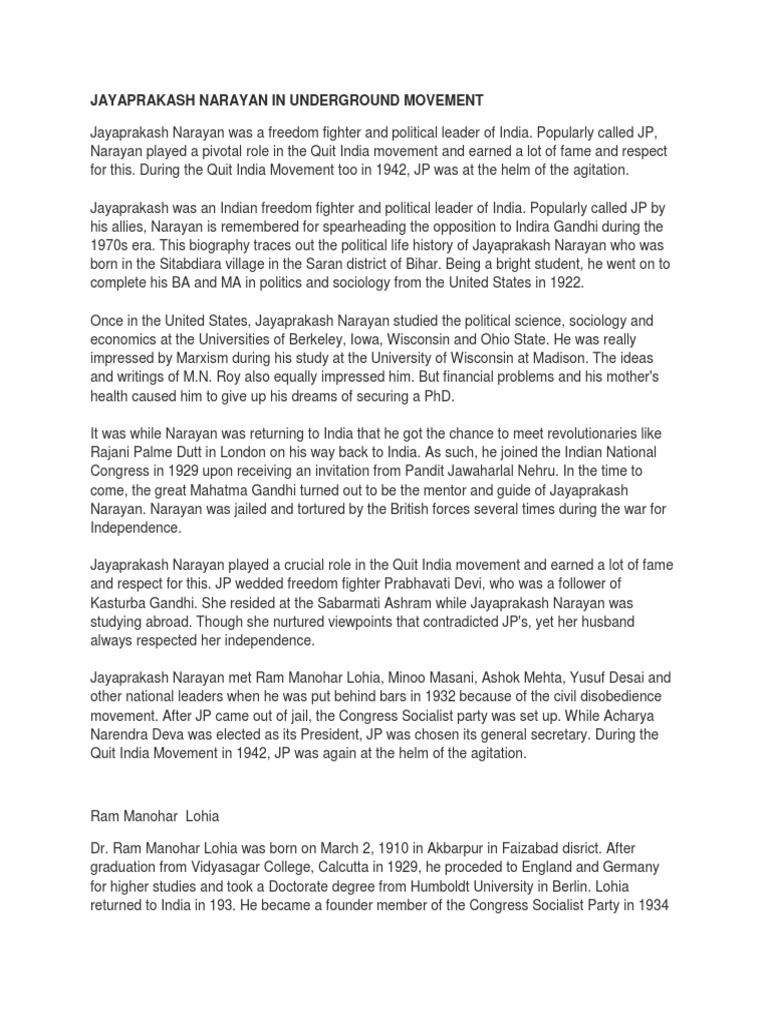 Jayaprakash Narayan In Underground Movement Politics Of India Documents On Socialist Movement In India www.scribd.com