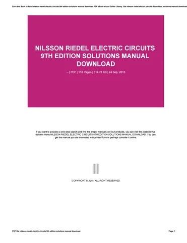 Download Electric Circuits Nilsson Riedel 9th Solution Manual Electric Circuits Nilsson Solutions 9th