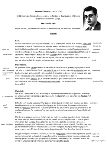 Exercises De Style Raymond Queneau Teaching Resources Exercices De Style www.tes.com