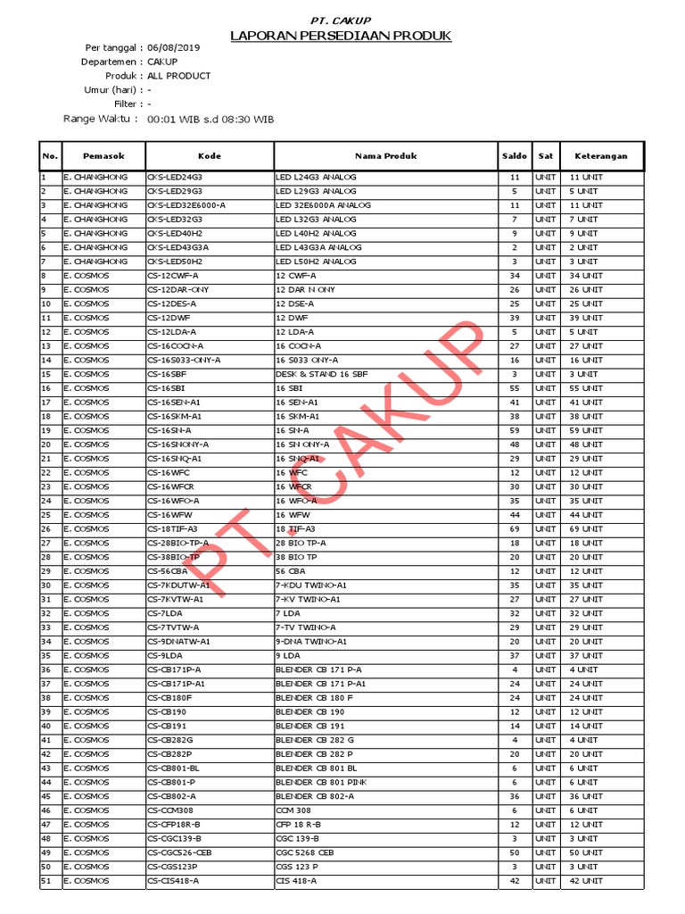 Persediaan Produk Per 06 Agustus 2019 Pdf Cold Refrigerator Freezer Sharp Fr 189 6 Rak www.scribd.com