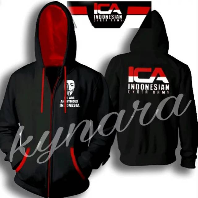 Jaket Zipper Hoodie Jumper Ica Indonesia Cyber Army Jaket Hacker Gambar Hacker Anonymous Indonesia shopee.co.id
