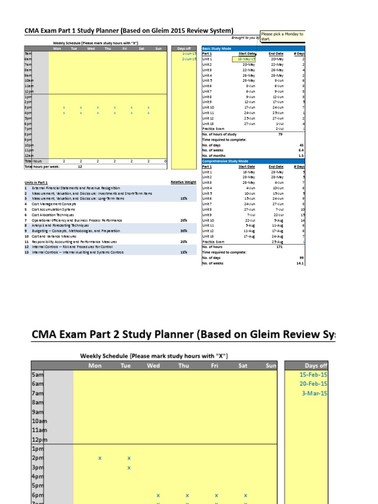 Gleim Cma Offline Study Planner 20151 Internal Control Investing Gleims Cma Review Part 1 Business Analysis