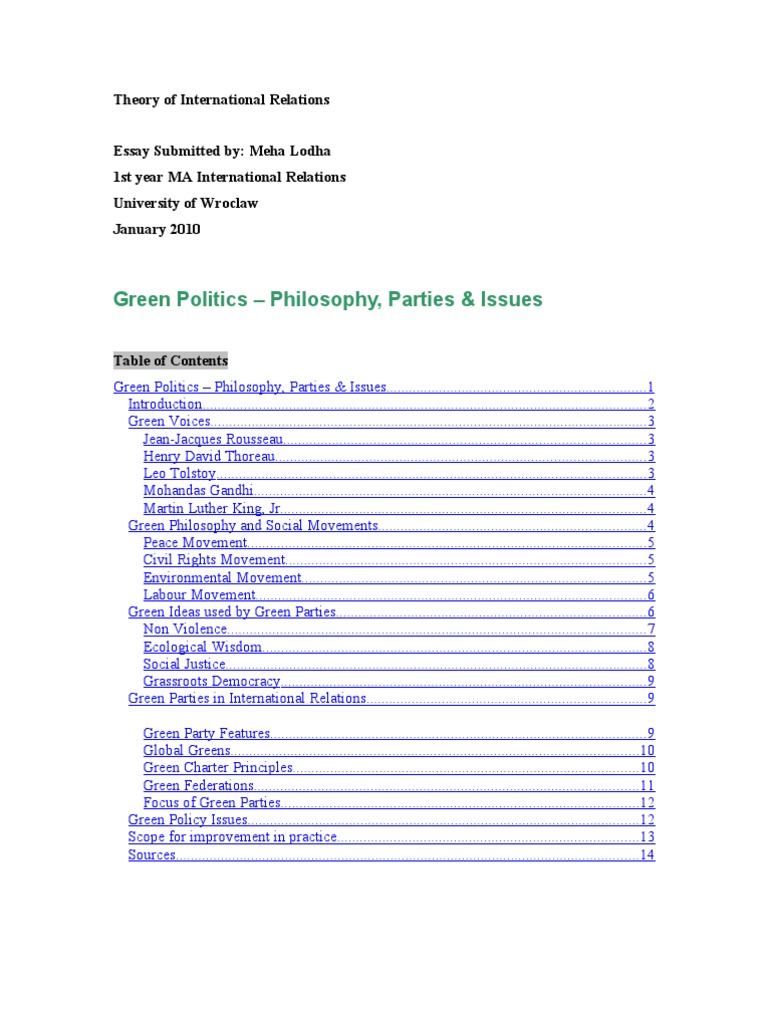 Essay Green Politics Green Politics Environmentalism Free Green Party Politics www.scribd.com