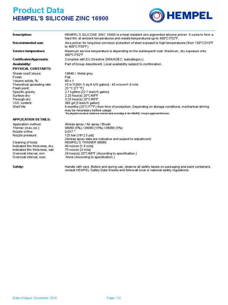 Product Data Hempel S Silicone Zinc 16900 Silicone Paint Hempel Paint Price List www.scribd.com