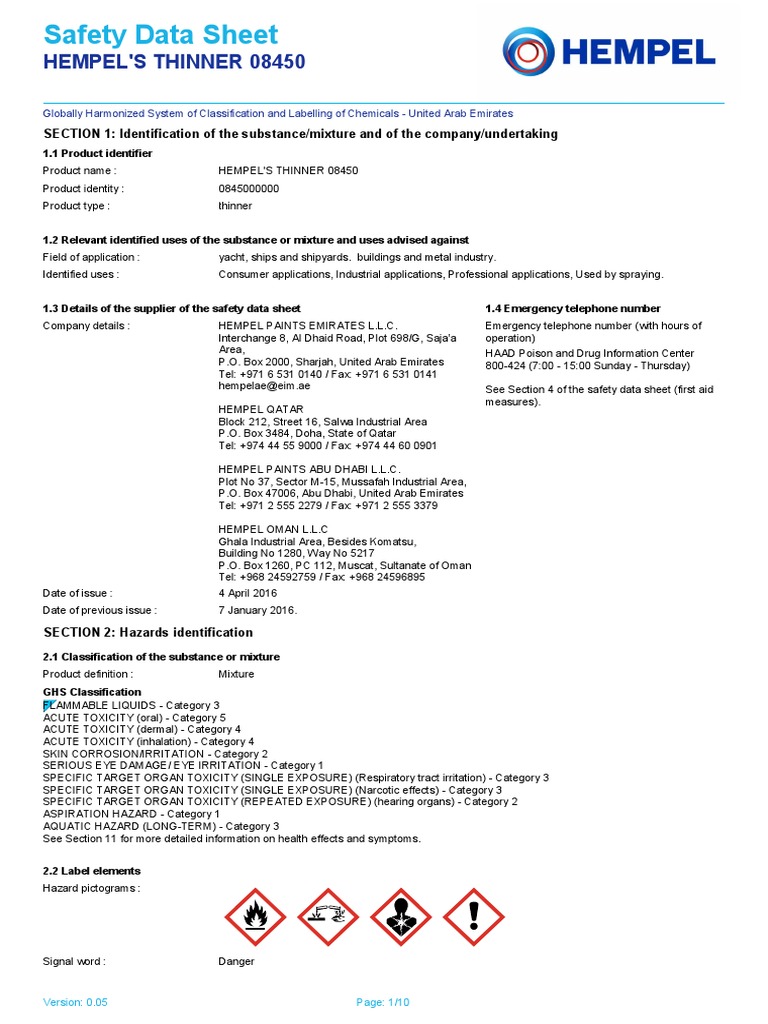 Hempel S Thinner 0845000000 En Us Toxicity Personal Protective Hempel Paints Qatar www.scribd.com