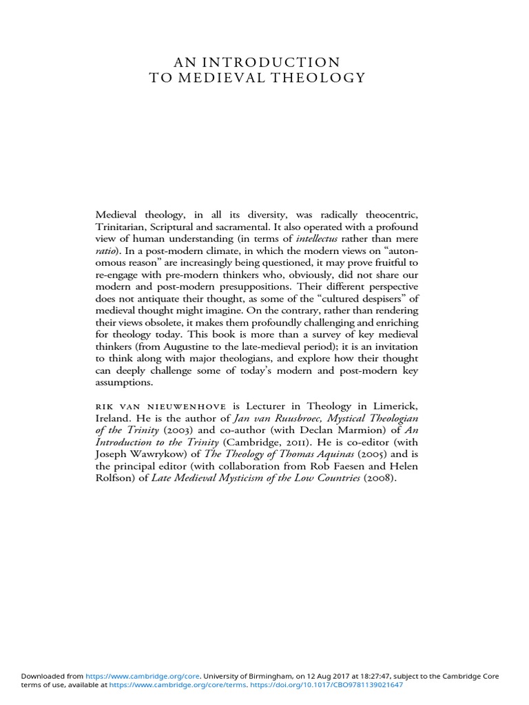 An Introduction To Medieval Theology Introduction To Religion Introduction To Medieval Theology