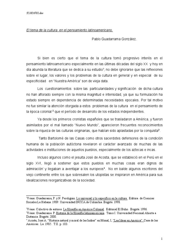 Guadarrama Cultura Pensa Latinoa 1 America Latina Cuba Lo Universal Y Lo Especafico En La Cultura es.scribd.com