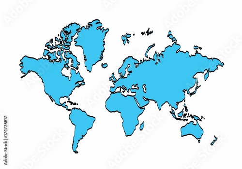 Blue World Map Outline Graphic Freehand Drawing On White Outline America And Europe Map stock.adobe.com