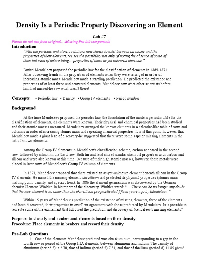Viewinggei Blog Archive Density Is A Periodic Property Lab Answers Periodic Properties Of The Elements Lab Answers
