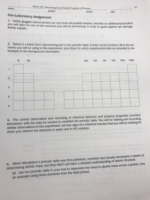 Reac 633 Discovering Some Periodic Propenties Of Chegg Com Periodic Properties Of The Elements Lab Answers