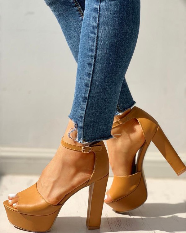 Brown Chunky Heels Strappy Platform Sandals Open Toe High Heel Platform Chunky Heels Sandals