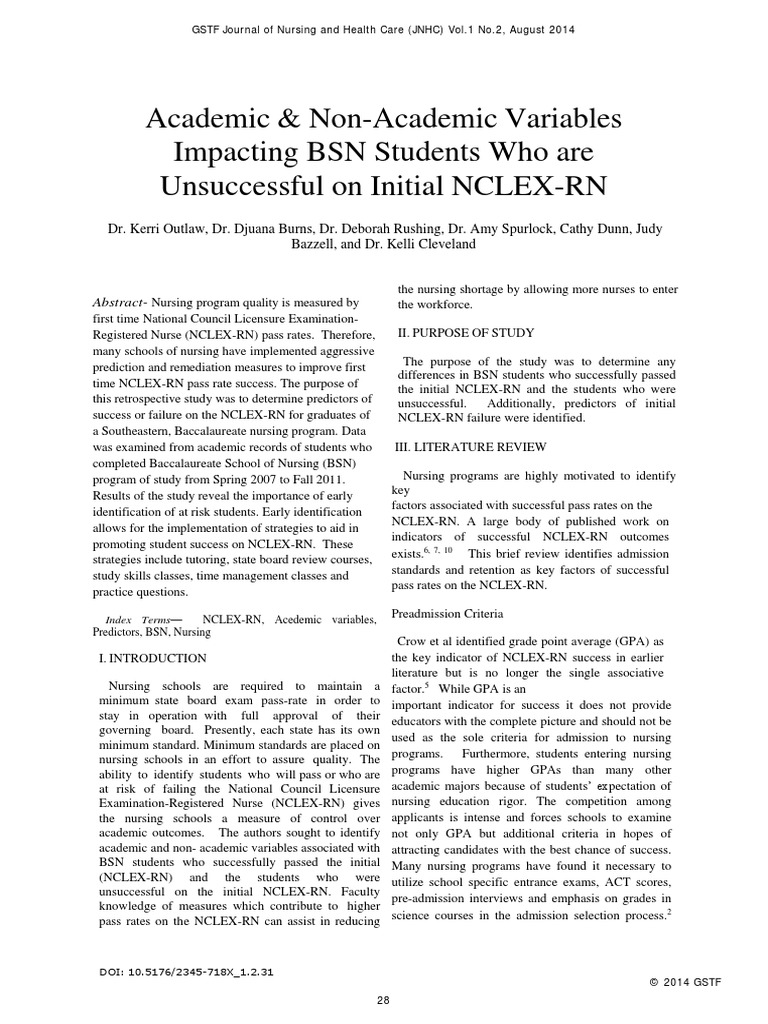 Pdf Predictors Of Nclex Rn Success In A Baccalaureate Nursing Preadmission Academic Achievement Criteria As Predictors Of Nursing Program Completion And Nclexrn Success