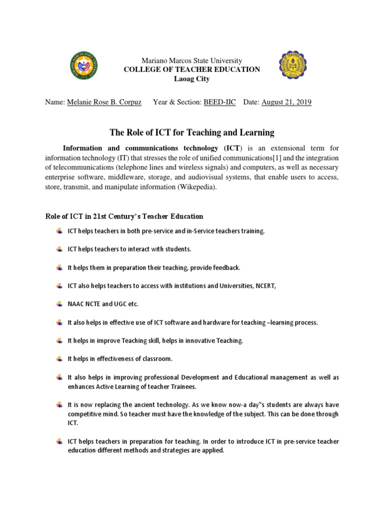 Doc Role Of Ict In Teaching Learning Process In Teacher Education Role Of Ict In Teaching And Learning