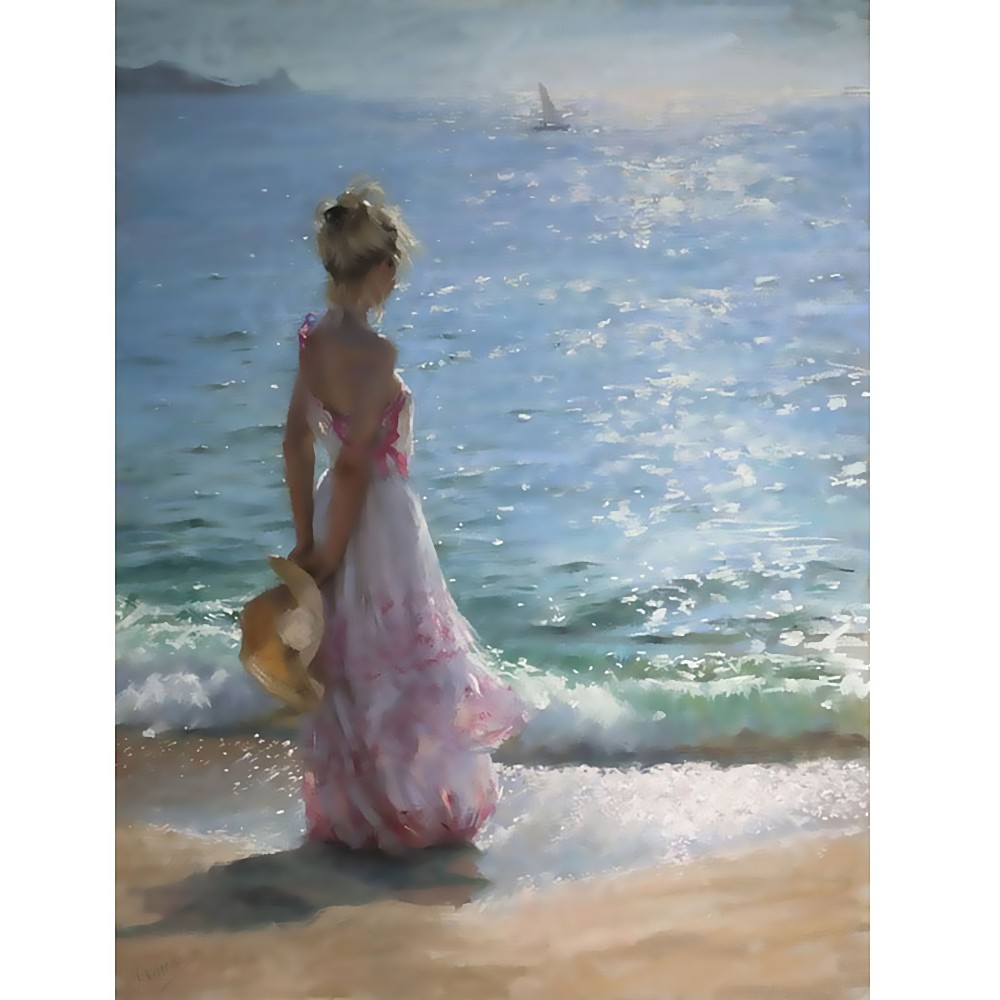 Qibooini Lukisan Cat Minyak Digital Desain Sea Girl Bahan Kanvas Sea Images With Girl shopee.co.id