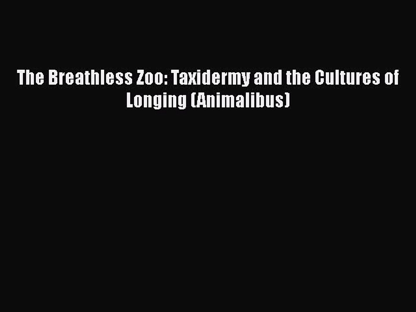 Pdf The Breathless Zoo Taxidermy And The Cultures Of Longing The Breathless Zoo www.dailymotion.com