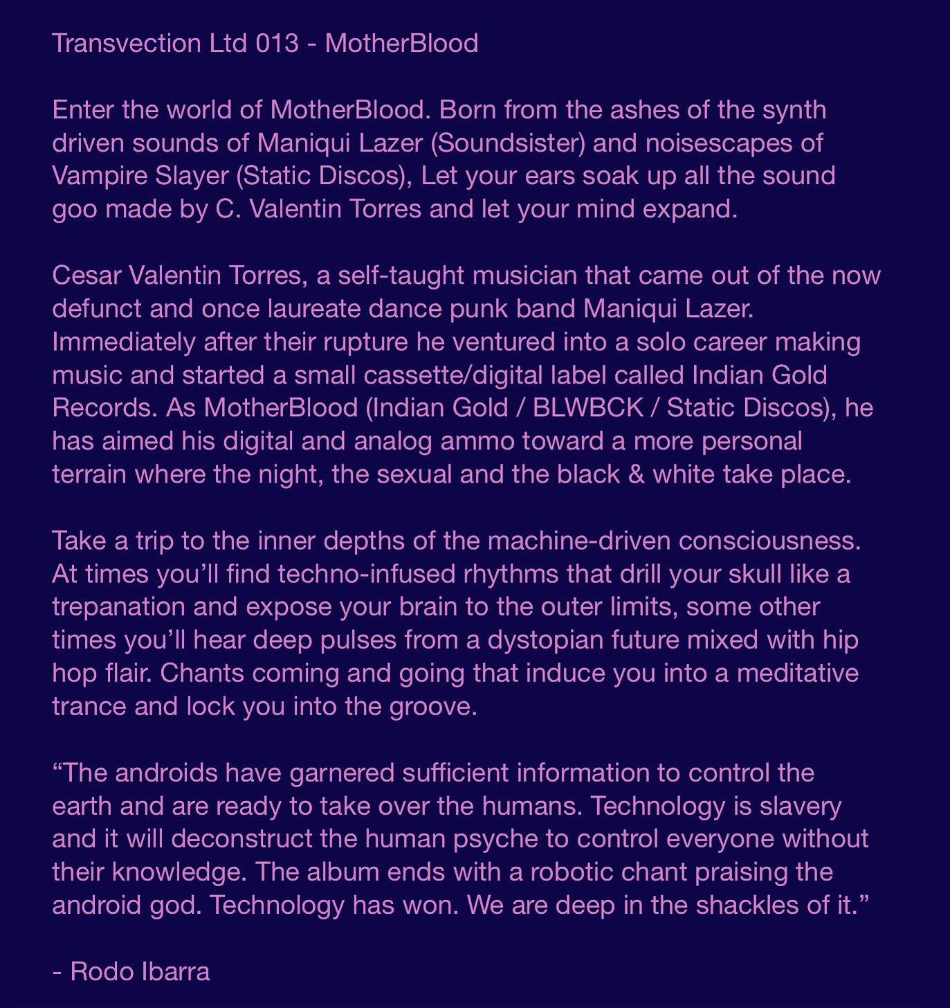 Transvection On Twitter About Tra013 Motherblood Coming The Transvection Machine twitter.com